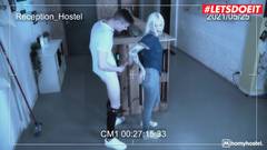 Jovens e belos amantes, a loira Arteya e o belo Tommy Cabrio mostram uma cena apaixonada em que ela chupa um pau comprido e ele a fode por trás, em pé.