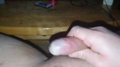 Veja como ele serra seu pequeno pênis até gozar! Ele decidiu filmar tudo para nós!