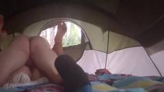 Esse casal fica excitado com o calor do verão e decide aproveitar para transar dentro da barraca.