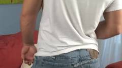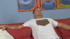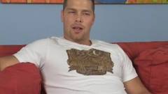 Aqui vemos Brad desfrutando de seu pênis no sofá e gozando nele antes de tomar uma ducha quente.