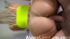 A garota loira está sentada em seu pinto e sendo preenchida com seus centímetros sólidos que se ejaculam por ela depois