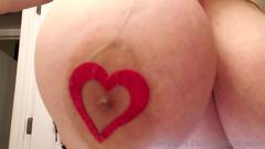 A quente Milf Subrina Lucia marca suas mamas com um coração nos mamilos para que você saiba exatamente onde ela tem o maior prazer quando é sugada.