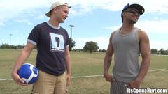 Esse cara negro está enchendo o rabo de seu parceiro branco que quer ser esticado e penetrado completamente
