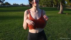 Giulia é uma verdadeira fofinha, ela é muito charmosa, ela faz se exhibe lá fora antes de revelar seu peito perfeito e bater siririca