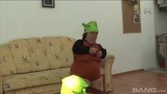 Essa anã gorda está fazendo tudo o que pode para satisfazer esse cara e vai acabar com porra na cara.