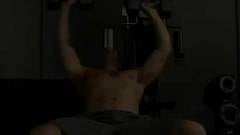 Essa morena transsexual apanha um cara musculoso a fazer exercícios. Gosta daquela cena, por isso seduz ele pegando boquete e trepando sem do.