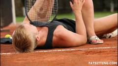 Facesitting na quadra de tênis com uma BBW dominante