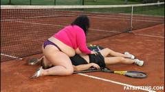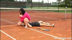 Esse cara vai conhecer uma BBW, ele vai ser dominado e vai ter que comer sua buceta na quadra de tênis, ele se submete de bom grado.