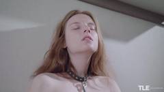 Essa ruiva vai se tocar discretamente, enquanto chupa sensualmente um de seus lindos sapatos de salto alto