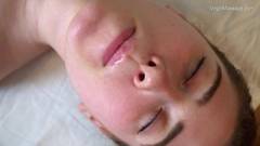 Uma grande cena entre duas lésbicas em que a virgem teen é massageada com óleo em seu corpo e especialmente em sua buceta