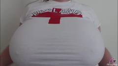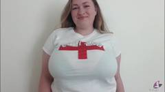 Essa garota inglesa vai mostrar seus enormes seios bem de perto, para nosso prazer. Ela vai tocar e lubrificar seus seios.