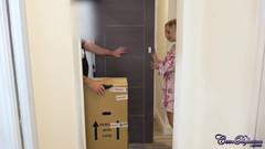O cara é pego se masturbando com a calcinha da loira bonita, ela vau dar um bnoquete perfeito para ele gozar na sua boca