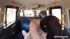 O taxista oferece a esta jovem mulher para foder sua buceta. Ela suga, lambe o traseiro dele. Ele come ela em todas as posições na parte de trás do táxi