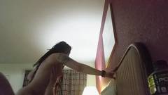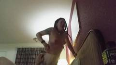 Essa morena hippie vai transar com o amante no quarto de hotel. Ela sempre em cima do galo cavalgado sem parar até conseguir a porra dele.
