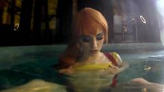 Uma cabra ruiva senta-se numa piscina cheia de água e acaricia a sua cona com os dedos. Vejam como ela é marota e sexy!