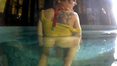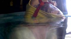 A cabra bate uma boa siririca numa piscina e filma debaixo da agua