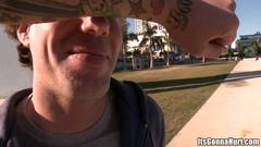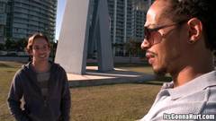 O negro musculoso tem um galo muito grande que o garoto branco chupa e depois de um tempo ele sente no seu traseiro. Você não vai querer perder isto!