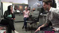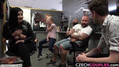A garota morena sexy e seu parceiro oferecem dinheiro a um jovem casal para sexo em grupo e troca de sexo. A putaria vai correr muito legal.