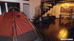 Uma loira gostosa pega seus enteados tocando punheta na sala, dentro de uma barraca e resolve ensinar para eles o que é uma boafoda de verdade.