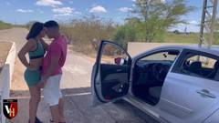 Eles vão dar uma volta e isso a faz querer foder com o namorado. Eles encontram uma barraca abandonada e fodem como coelhos.