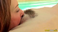 Estas três mulheres passam uma tarde agradável, se beijam na piscina antes de se lambarem à beira da piscina. O sexo ao ar livre é o mais excitante.