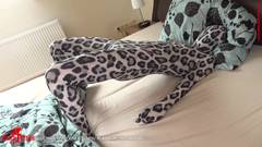 Essa garota loira gosta muito de trajes fetichistas e vai nos mostrar o que pode fazer com eles! Não perca este vídeo!