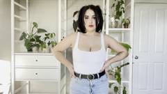 Uma morena luxuriosa com grandes peitos e uma bunda deliciosa fará um striptease sexy e estimulante em frente à câmara e exibirá a sua buceta molhada.