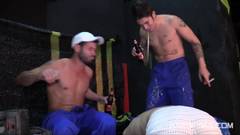 Dois trabalhadores da construção civil, Adrian Yuyu e Dany Romeo fazem uma pausa no trabalho e, com uma cerveja e um cigarro, dominam um colega submisso!