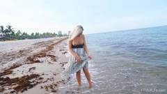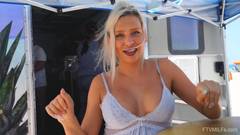 MILF gostosa se masturbando no carro enquanto dirige para a praia