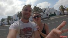 Aqui está um casal espanhol excitado em férias na Ilha Canária de Lanzarote e nos oferecem uma boa fita de sexo com um broche e fodas ao ar livre.
