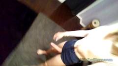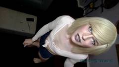 Mila Swift loira trans fica em frente da câmara e diz algo sensual enquanto coloca a sua grande pila no berço com a mão. Uma cena extremamente tentadora