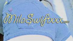 A doce Mila Swift com uma camisa rosa e sua enorme piroca