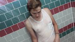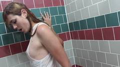A puta trans com mamas pequenas gosta de se masturbar no banho. Ela começa no duche e bastante molhada, mas no seu colete ejacula na banheira