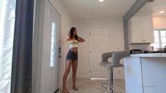 Johnny Sins começa seu dia com um lanche enquanto come essa morena e depois a leva para o quarto para uma boa foda.
