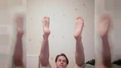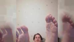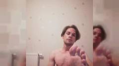 Ele se masturba e mostra seus pés na camara