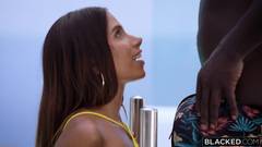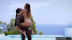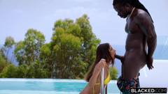 Ela está sedenta por um pau grande e negro, então ela sai da piscina para ser fodida por uma vara monstruosa como ela merece.