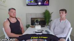Dois jovens gays musculados, Canelo Ment e Jeremy Barker jogam strip poker, excitados pela visão dos seus corpos, vão para a cama para foder profundamente!
