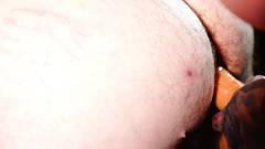 Ele adora ser amarrado e dominado por sua esposa de peito grande que espalha seu rabo com um dildo e sua grande alça
