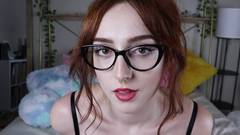 Mais uma vez você verá uma jovem ruiva com óculos se masturbando com um grande dildo em várias posições para seus fãs, não perca isso!