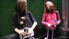 Uma vez no carro, as duas lésbicas excitadas começam a se excitar e a fazer sexo dentro do carro e acabam em casa.