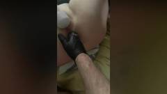 Ele começou com um dildo para alargar esse rabo apertado e ajudá-la a ficar molhada e pronta para seu punho grande ir lá para dentro