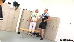 Esta bela líder de torcida tem que decidir qual das duas equipas vai ganhar hoje! O capitão de cada equipe irá para o vestiário para tentar dar à safada um máximo de prazer ...