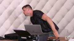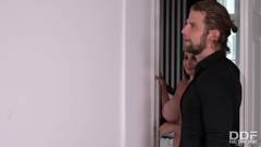 Quando ela o viu conversando com o namorado, ficou excitada e o seduziu com seus peitos grandes para que se juntasse a ela na cama para uma transa apaixonada.