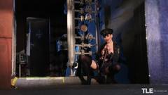 Essa linda policial de cabelos castanhos está muito excitada e adora brincar com seu cassetete na buceta!