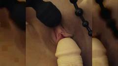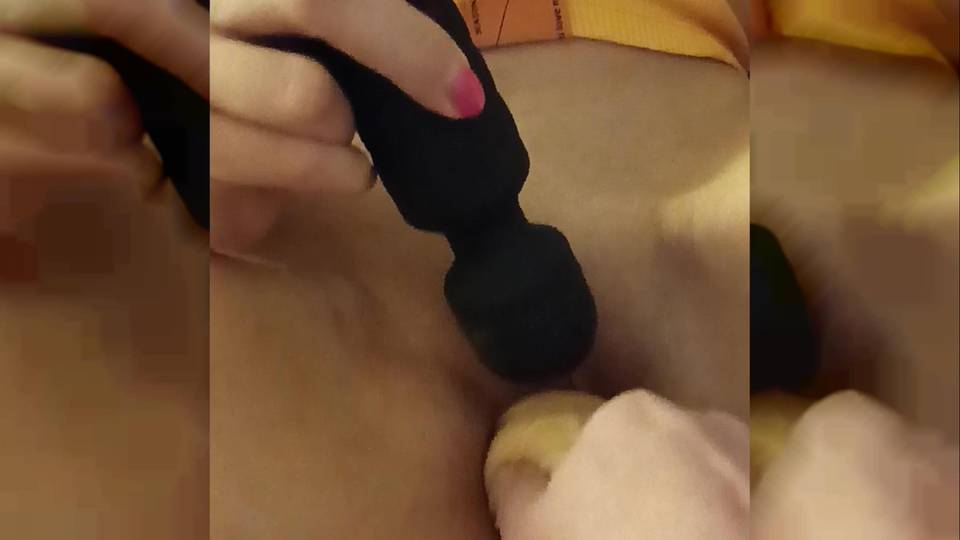 Eu faço vibrar minha xoxota enquanto ele brinca com minha xota e consegue esguichar minha xota com um grande dildo!