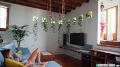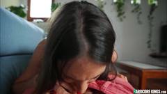 O nome do técnico é Paolo e ele pega a morena MySweetApple se masturbando sozinha no sofá e ela chupa seu pau POV