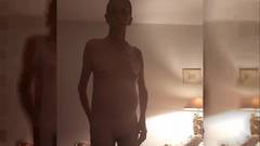 Este velho pervertido está completamente nu e acho que ele está entediado porque começa a dançar na frente da câmera no meio da noite.