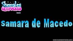 A transexual Samara de Macedo terá seu cuzinho preenchido com o esperma dele e a parte superior do corpo com sua própria porra.