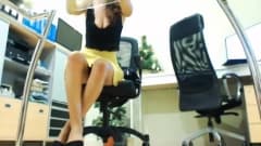 Secretária Lusty levanta sua saia e se masturba com seu vibrador