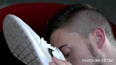 Aytor Wilde tem seus pés lambidos e seu cuzinho dilatado por Gaston Croupier antes de ser fodido.